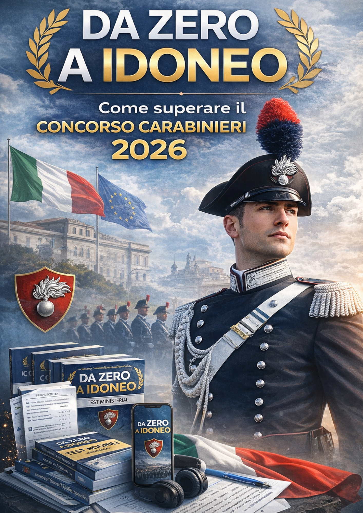 Nel manuale trovi un percorso completo per il concorso Carabinieri: piano di studio guidato, spiegazioni chiare della teoria, strategie per i quiz, indicazioni pratiche per prove fisiche, visite e attitudinali. È pensato per accompagnarti passo passo, da Zero a Idoneo.
